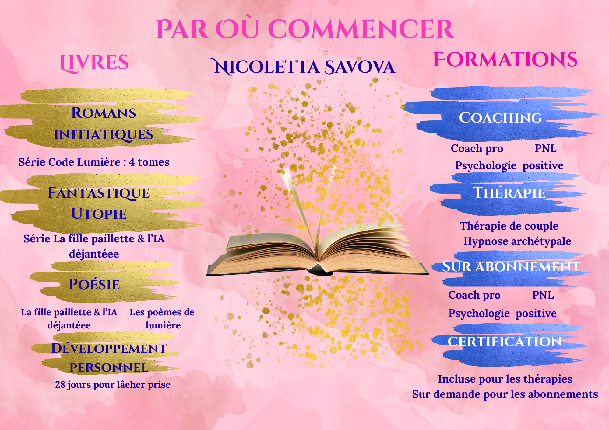 Je propose également des conférences, ateliers et interventions autour de l’imaginaire et de la transformation personnelle. Contact à l’adresse contact@nicolettasavova.com